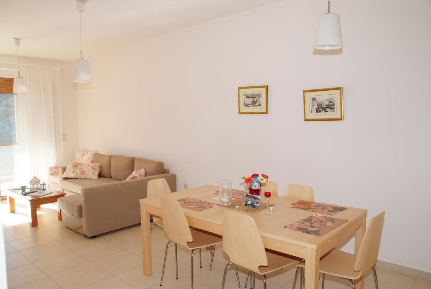 Two-Bedroom Townhouse. Opening to a spacious balcony with magnificent sea view, this house is divided in 2 levels connected with an internal staircase. It consists of 2 separate bedrooms, an open-plan kitchen with seating area and 2 bathrooms. Facilities include a toaster, fridge and a coffee machine. Free WiFi is provided. An external and internal staircase are available.