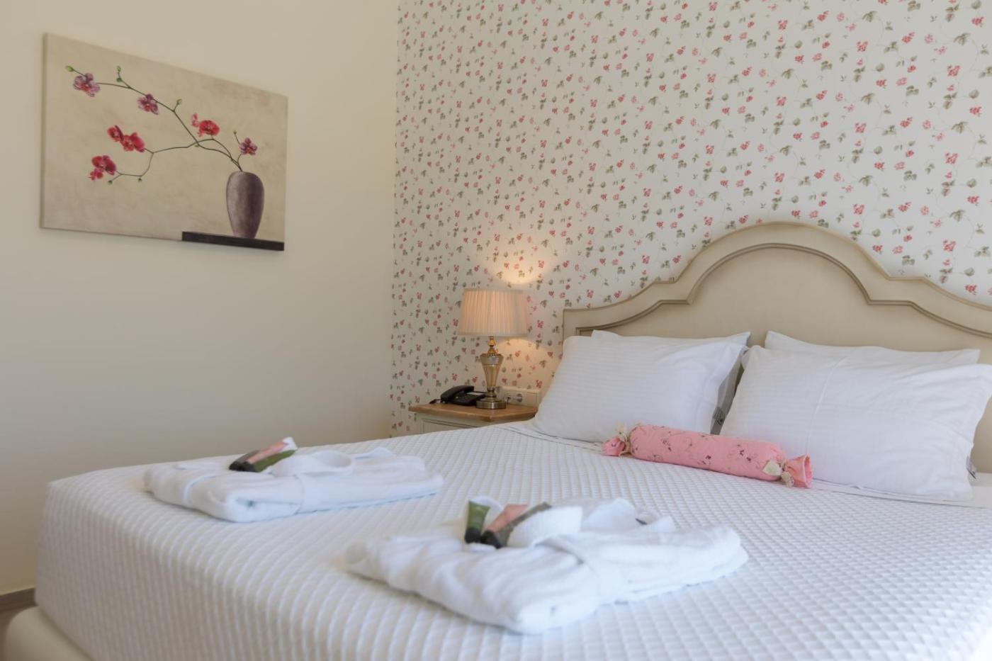Overlooking the pool or the garden,rooms and suites of Elafonissos are fitted with white furnishings and floral fabrics. Each air-conditioned unit is equipped with a minibar, a safe and an LCD satellite TV. The private bathroom features a shower cabin with hydromassage jets, free toiletries and a hairdryer.