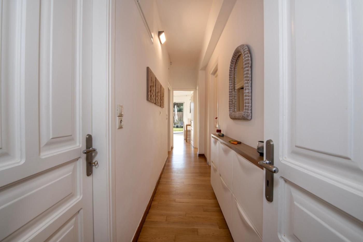 Three-Bedroom Apartment. This apartment features a fireplace. Guests will find a stovetop, a refrigerator, a dishwasher and kitchenware in the well-fitted kitchen. The apartment also comes with a barbecue. The spacious air-conditioned apartment features a flat-screen TV with satellite channels, a washing machine, a private entrance, a tea and coffee maker as well as garden views. The unit has 5 beds.